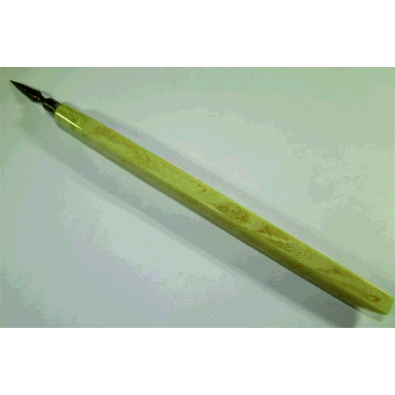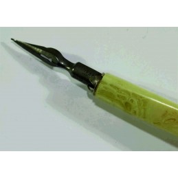 Porte-plume en galalithe. La galalithe (« pierre de lait », du grec ancien gála, « lait », et / líthos, « pierre ») est un polymère thermodurcissable issu de la caséine et une des premières matières plastiques avec l’ébonite utilisées pour la fabrication d’objets d’écriture au début du 20ème siècle. En bon état. Livré avec 3 plumes. Pour apprendre à écrire à la plume.