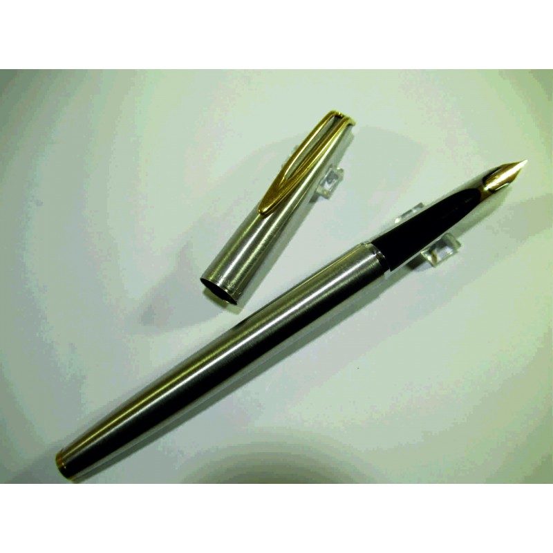 Stylo plume WATERMAN CF à cartouche non fournie, plume or « 18 K - 750», en inox brossé, légères traces d’usage, bon état général, pour collection. Sans garantie pour être utilisé.
