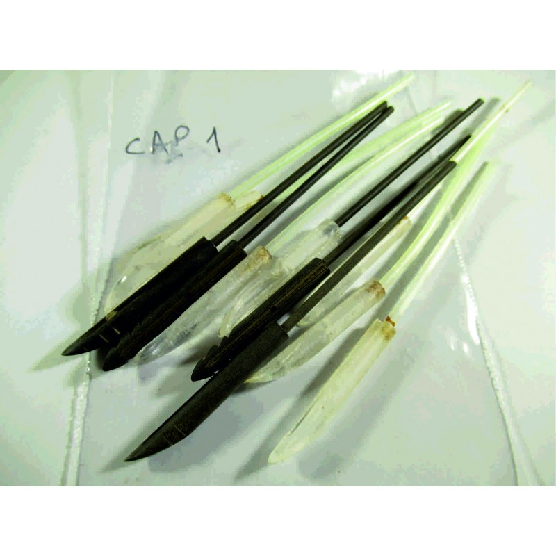 Lot de 10 conduits pour sacs accordéon (4 en ébonite + 6 en PMMA). Longueur sans le tube : 35 mm, diamètre : 5 mm.