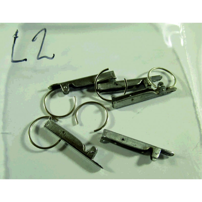 Lot de 5 leviers avec ressorts intérieurs. Longueur : 20.5 mm, largeur : 2 mm, matière : acier nickelé.