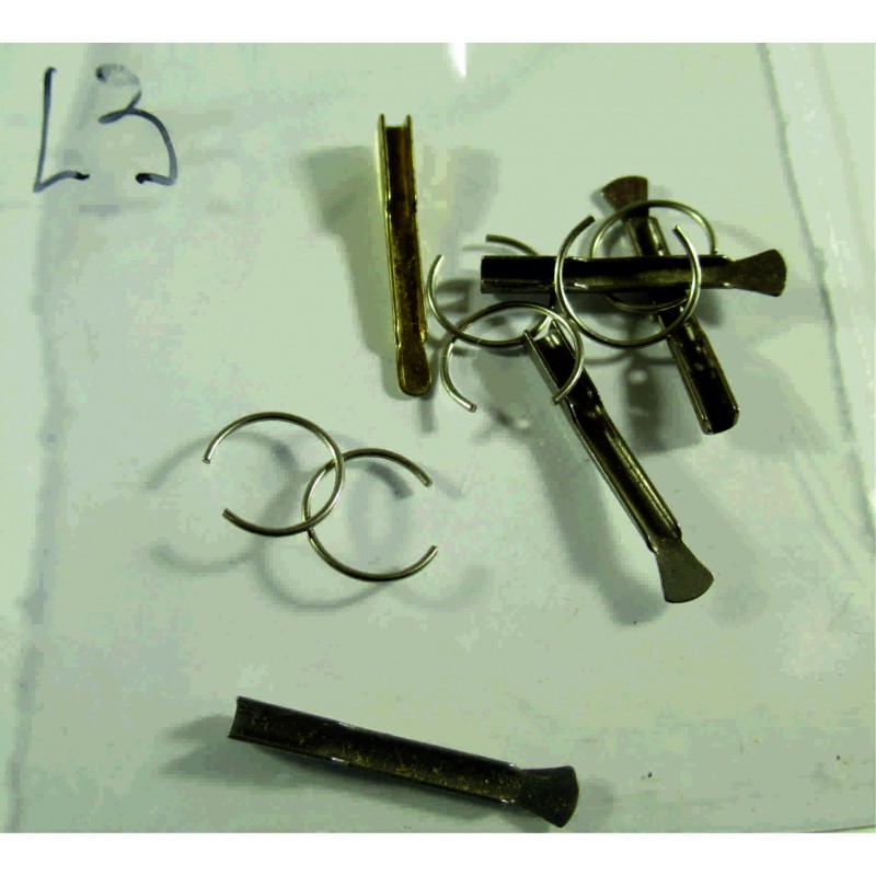 Lot de 5 leviers avec ressorts intérieurs. Longueur : 21 mm, largeur : 2.5 mm, matière : acier nickelé.