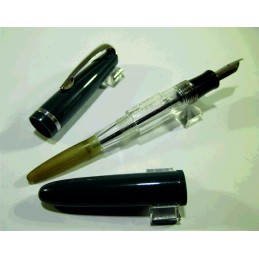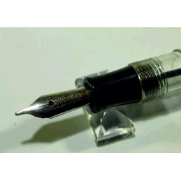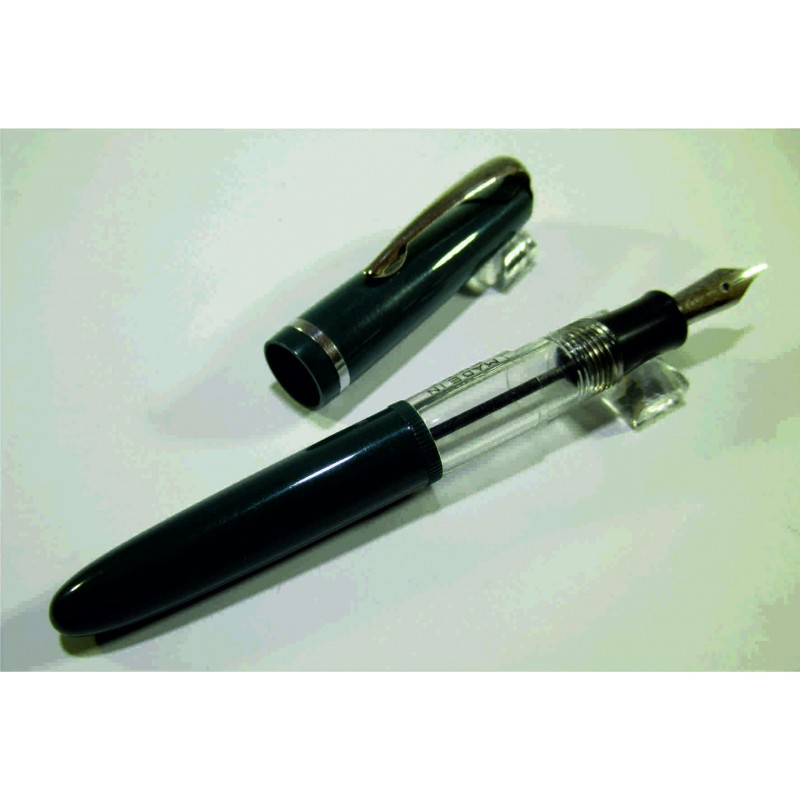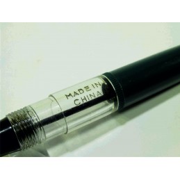 Petit stylo plume chinois amusant sans marque apparente, en celluloïd vert et transparent, longueur capuchon fermé 96 mm, diamètre du capuchon 10 mm, plume acier, marquage sur le corps du stylo « MADE IN CHINA », system de remplissage avec sac présent, jamais utilisé, bon état général. Sans garantie pour être utilisé, pour collection.