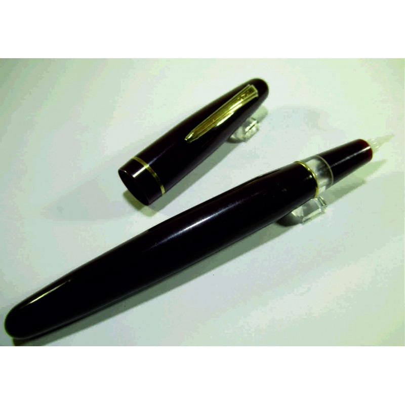 Stylo plume français, marquage sur le clip « AGAP », en celluloïd rouge bordeaux, plume en verre, système de remplissage à poussoir avec sac présent dans le stylo, jamais utilisé, pour collection. Sans garantie pour utilisation.