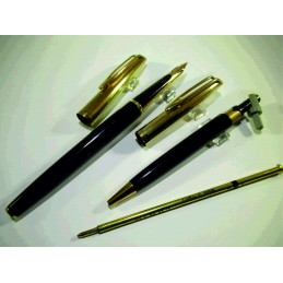 Parure stylo plume et bille WATERMAN CF, plume or « 18 K - 750 », noir et capuchon plaqué or, cartouche non fournie, bon état général, la cartouche du stylo bille est à changer. Pour collection ou pour utiliser.