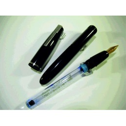 Stylo plume WATERMAN à cartouche verre présente dans le stylo, le joint caoutchouc est neuf, plume or « WATERMAN’S – 18 Cts – 2 – France », couleur noir, marquage sur le corps « WATERMAN’S », longueur avec le capuchon : 132 mm, diamètre du corps : 12 mm, bon état général, pour collection, aucune garantie pour être utilisé.