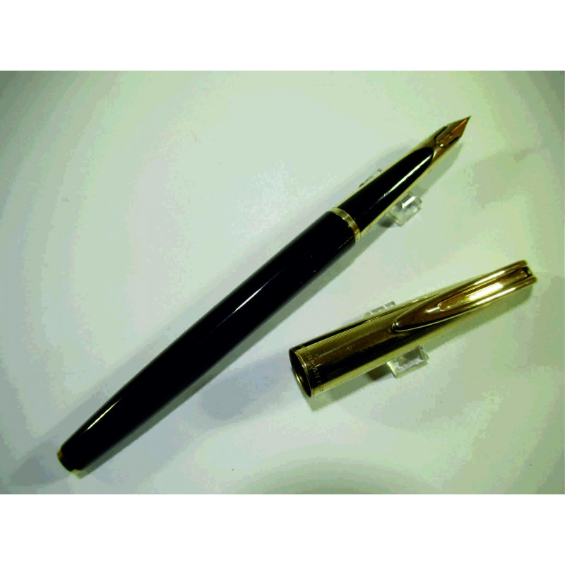 Stylo plume WATERMAN CF à cartouche non fournie, plume or « 18 K – 750 », couleur noir, capuchon plaqué or, bon état général, pour collection. Sans garantie pour être utilisé.