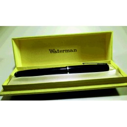 Stylo plume WATERMAN à levier, sac absent, plume or « WATERMAN’S – 18Cts – 2 –FRANCE » , couleur noir, marquage sur le clip et sur le corps « WATERMAN’S », dans son coffret, bon état général, longueur avec le capuchon : 133 mm, diamètre du corps : 12,5 mm, pour collection, sans garantie pour utilisation.
