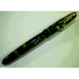Stylo plume allemand REFORM, ink vue en celluloïd marbré noir et vert, longueur capuchon fermé 126 mm, diamètre du capuchon 13.5 mm, plume acier « REGENT – 4R – GOLD PLATED », system de remplissage à piston non fonctionnel, gravé sur le clip « REFORM », gravé sur le corps « REFORM », nettoyé, bon état général, ne fonctionne pas et est exclusivement pour collection.