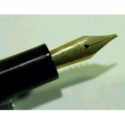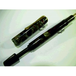 Stylo plume OSMIA, en celluloïd noir, rouge et gris, plume or « WARRANTED 14 CT », marquage sur le corps « OSMIA ASPIRO – Breveté » et « GERMANY», système de remplissage à piston non fonctionnel, bon état général, exclusivement pour collection.