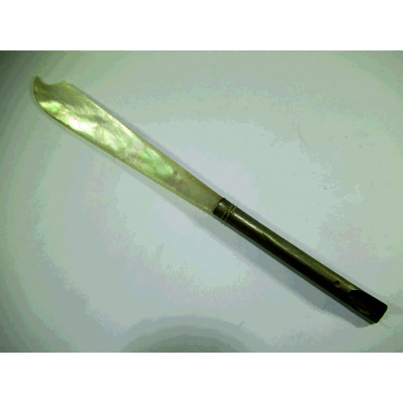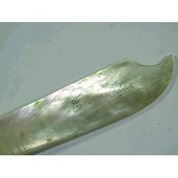 French “Souvenir” pen holder in natural mother-of-pearl. Souvenir of TROUVILLE (a village near DEAUVILLE in NORMANDIE). In good condition. Delivered with 3 nibs including a "bayonet" nib. For learn to write with a nib on a penholder or to collect.