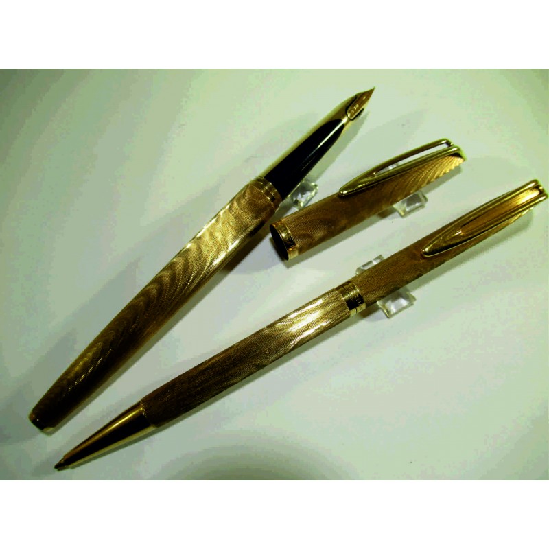 Fountain pen pen and ballpoint WATERMAN CF, gold pen "18 K - 750", gold plated moiré, cartridge not provided, good general condition (see photos), the cartridge of the ball pen is to change. For collection or to use.